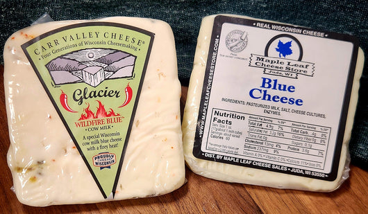 Carr Valley Glacier Wildfire Blue- Wildfire Blue is a semi-soft cheese made from cow's milk in Wisconsin. This hot blue cheese is ripened over 3 months that develops creamy and crispy flavors of a blue cheese which instantly melts in the mouth. This artisan cheese tastes delicious with salads, mac and strawberries.